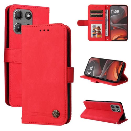 Funda de Cuero con Botones de Metal y Diseño Árbol de la Vida para Motorola Moto G15/G15 Power (Rojo)
