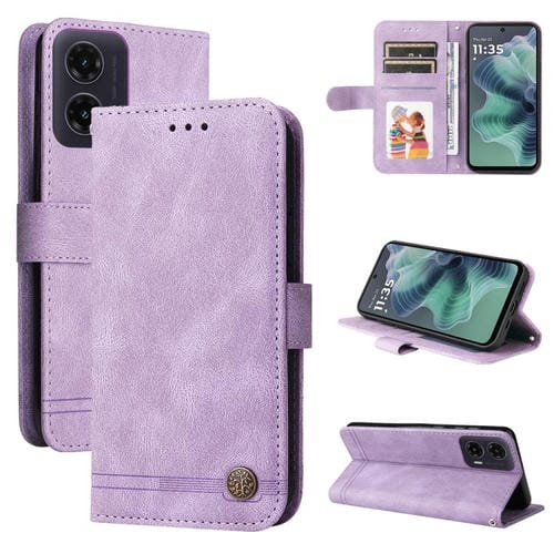 Funda de Cuero para Motorola Moto G35 con Botones de Metal y Diseño Árbol de la Vida (Morado)