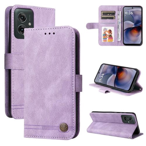 Funda de Cuero para Motorola Moto G55 con Botones de Metal y Diseño Árbol de la Vida (Morado)