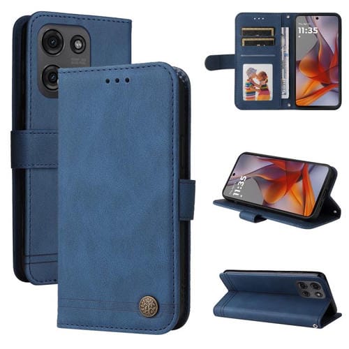 Funda de Cuero para Motorola Moto G75 5G con Botones de Metal y Diseño Árbol de la Vida (Azul)