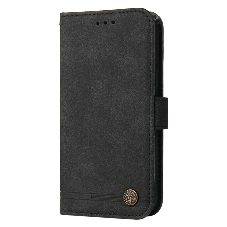 Funda de Cuero con Botones de Metal y Diseño de Árbol de la Vida para Oppo A3 Pro 5G Global/India (Negro)