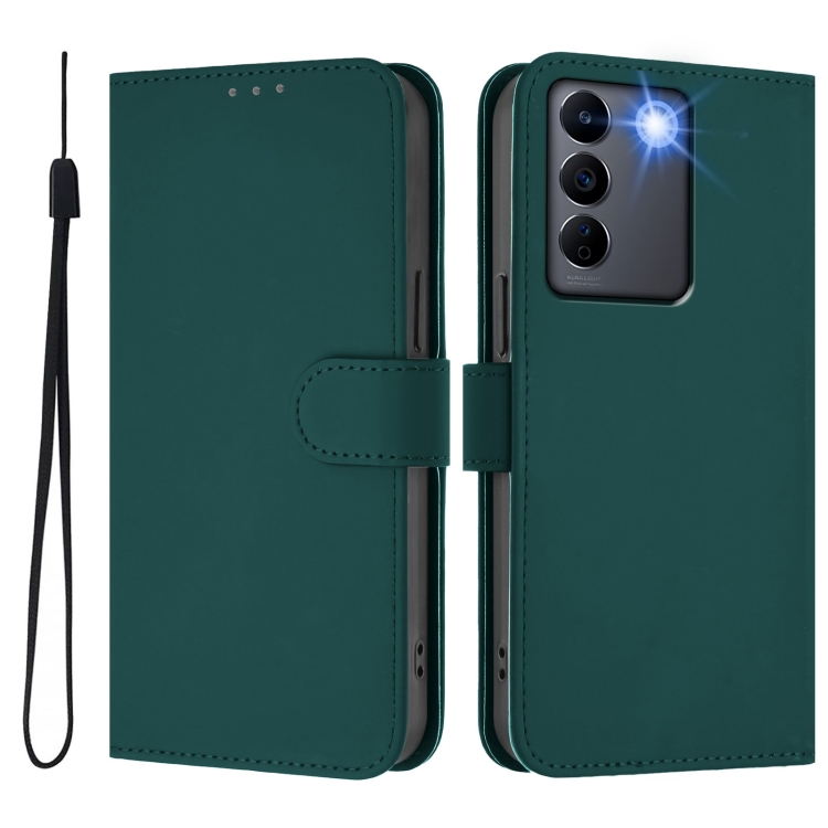 Funda de Cuero con Cordón para Teléfono con Sensación de Piel Global para Vivo V27 5G/V27 Pro 5G (Verde Oscuro)
