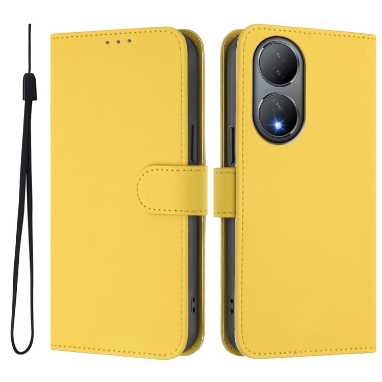 Funda de Cuero con Cordón para Teléfono con Sensación de Piel Global para Vivo Y100 5G (Amarillo Limón)