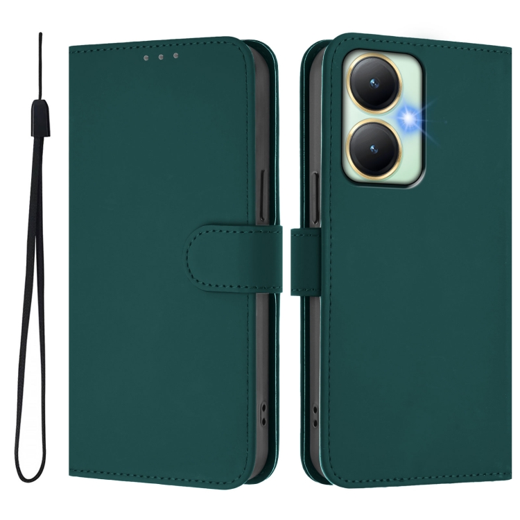 Funda de Cuero con Cordón para Teléfono con Sensación de Piel Global para Vivo Y27 4G 2023 (Verde Oscuro)