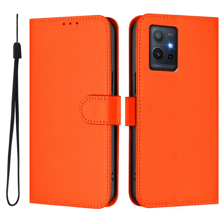 Funda de Cuero con Cordón para Teléfono con Sensación de Piel Global para Vivo Y55S 2023 5G / Y55 5G (Naranja)