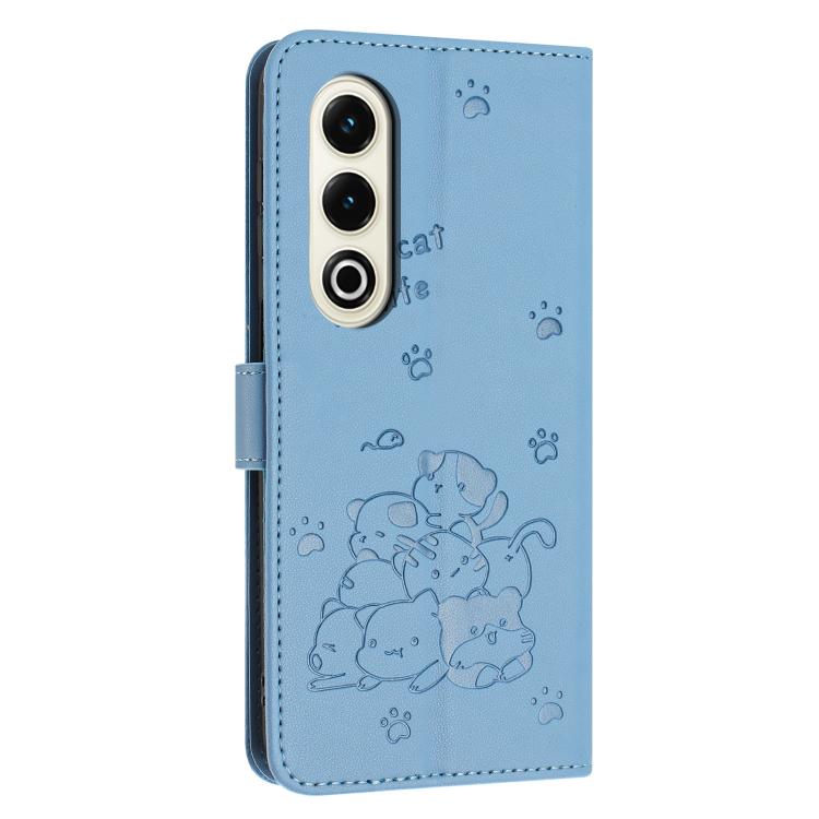 Funda de Cuero con Cordón para Teléfono Itel S25 con Gatito en Relieve (Azul)