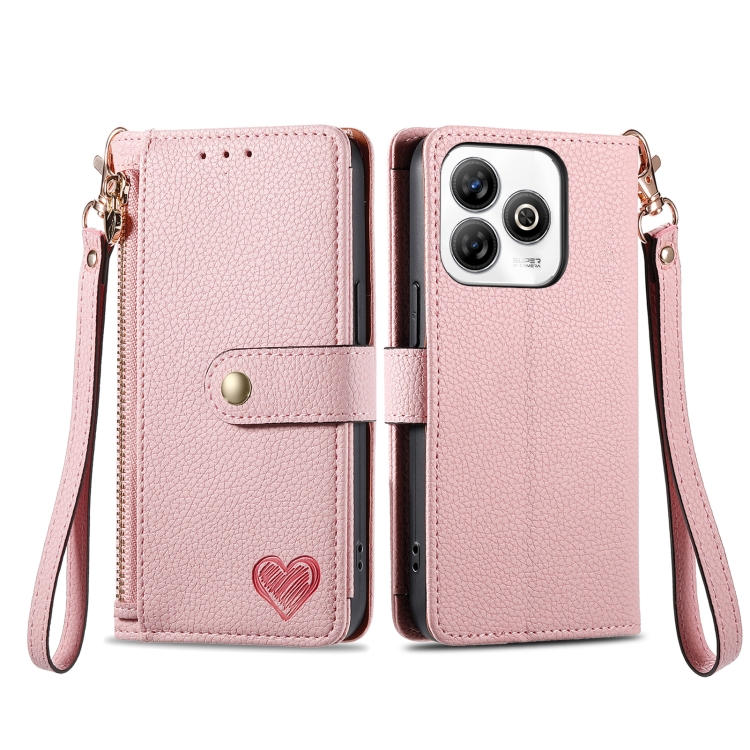 Funda de Cuero con Cordón y Cremallera Love para ZTE Blade A75 4G (Rosa)