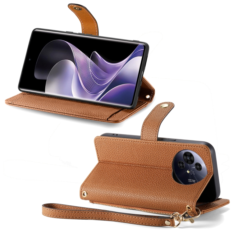 Funda de Cuero con Cordón y Cremallera Nxtpaper Love para TCL 50 Pro (Marrón)