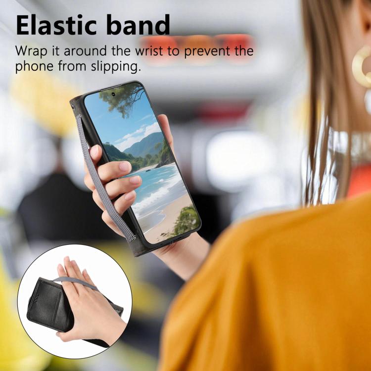 Funda de cuero con correa elástica y ventosa magnética para iPhone 17 Pro (negra)