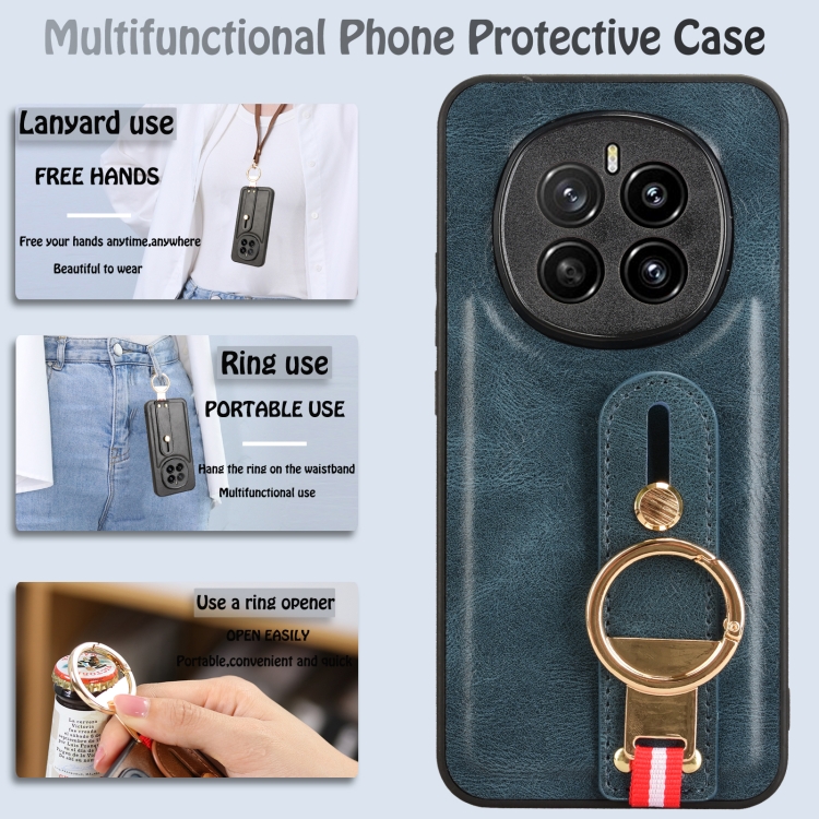 Funda de Cuero con Correa para Cuello para Honor Magic7 (Azul)