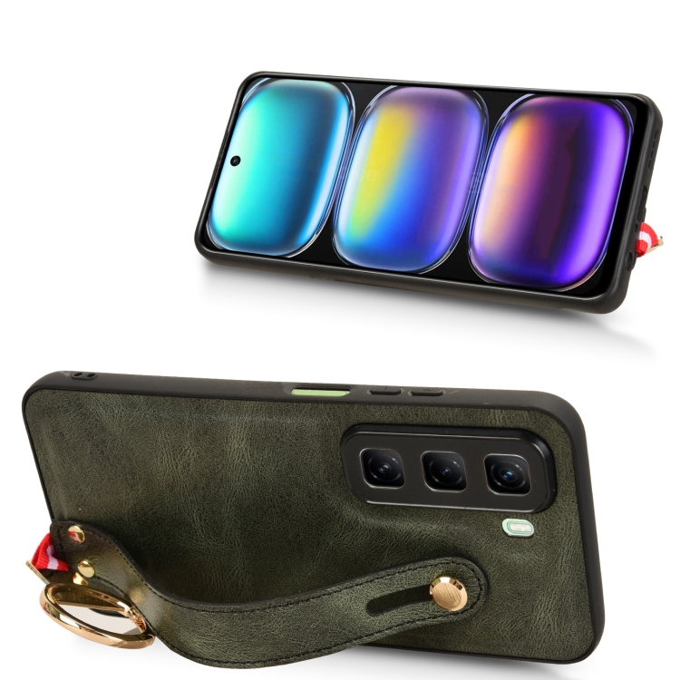 Funda de Cuero con Correa para El Cuello para Infinix Hot 50 4G (Verde)