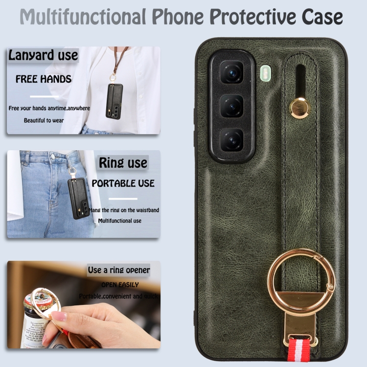 Funda de Cuero con Correa para el Cuello para Infinix Hot 50 5G (Verde)