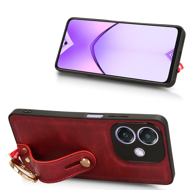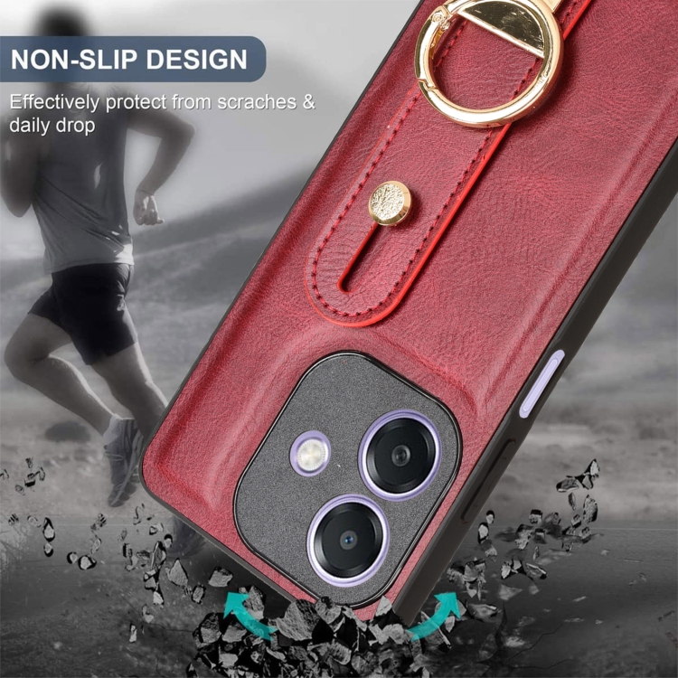 Funda de Cuero con Correa para El Hombro para Oppo A3X 5G (Rojo)