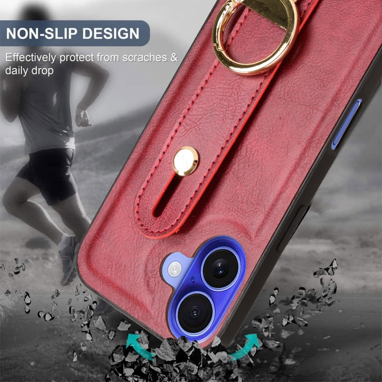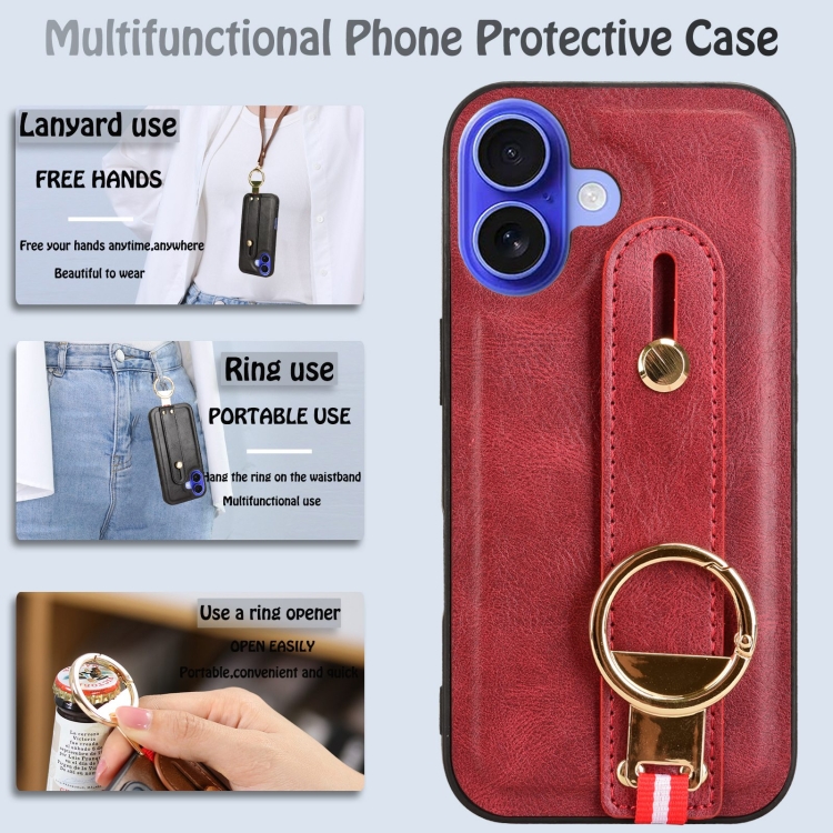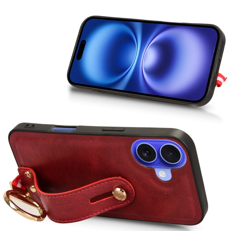 Funda de Cuero con Correa para la Muñeca para iPhone 16 (Rojo)