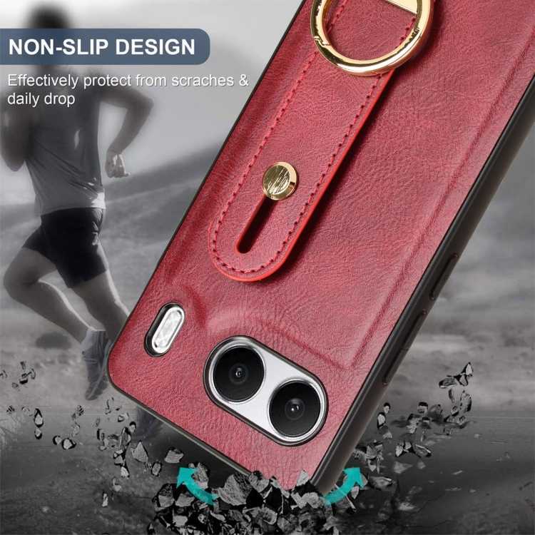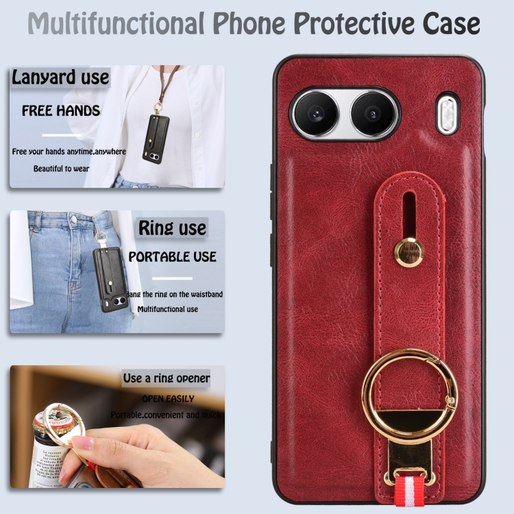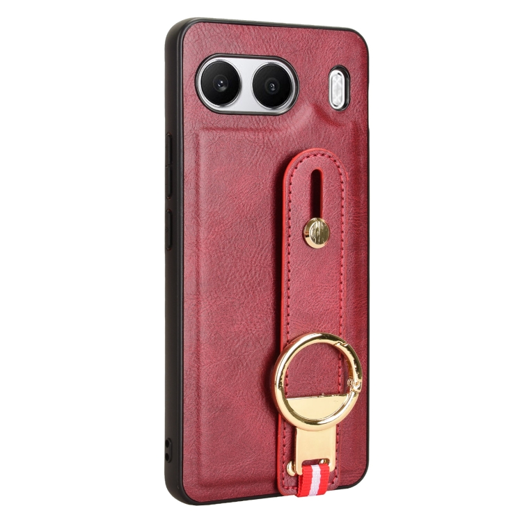 Funda de Cuero con Correa para la Muñeca para OnePlus Nord 4 5G (Rojo)