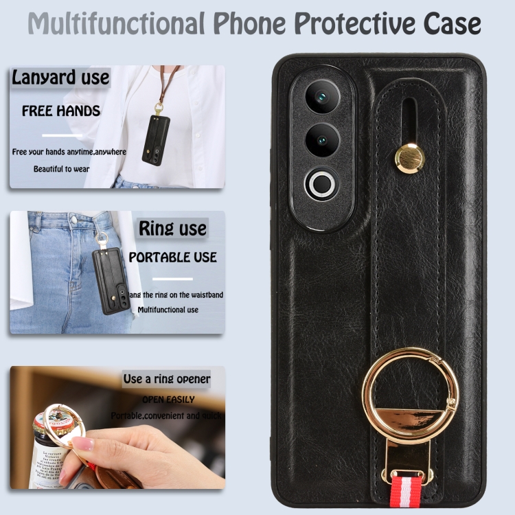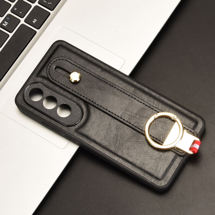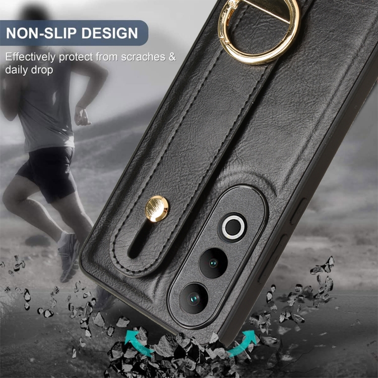 Funda de Cuero con Correa para la Muñeca para OnePlus Nord Ce4 (Negra)