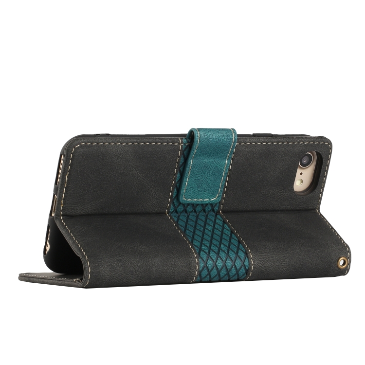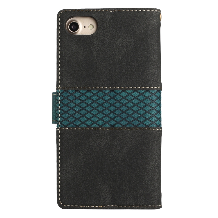 Funda de Cuero para iPhone Se 2022/2020 con Costuras de Cuadrícula y Cordón (Negro)
