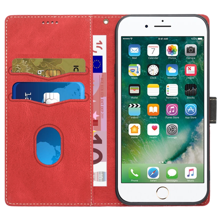 Funda de Cuero con Costuras de Cuadrícula y Cordón para iPhone SE 2022/2020 (Rojo)