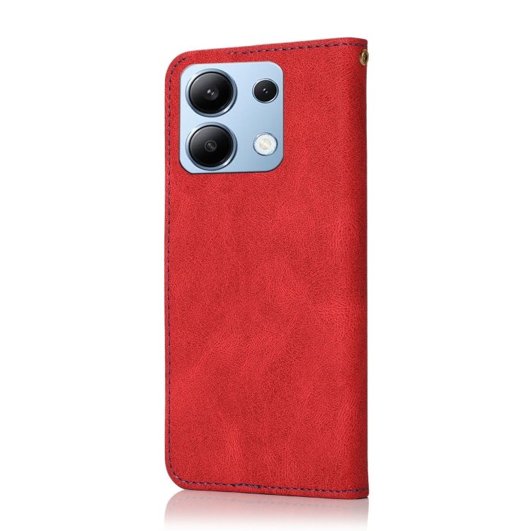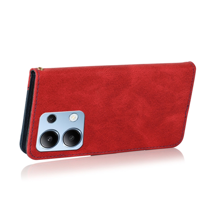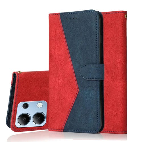 Funda de Cuero con Costuras de Dos Colores para Redmi Note 13 4G (Rojo y Azul)