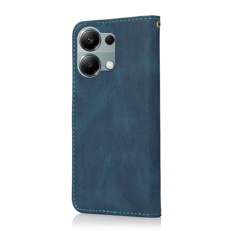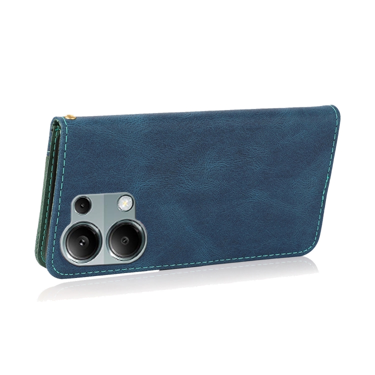 Funda de Cuero con Costuras de Dos Colores para Redmi Note 13 Pro 4G (Azul y Verde)
