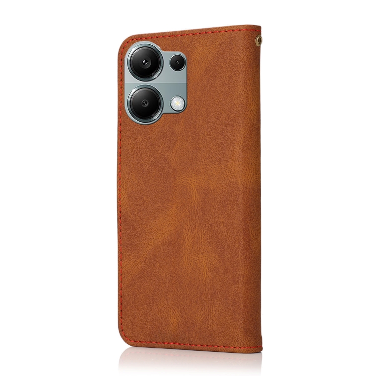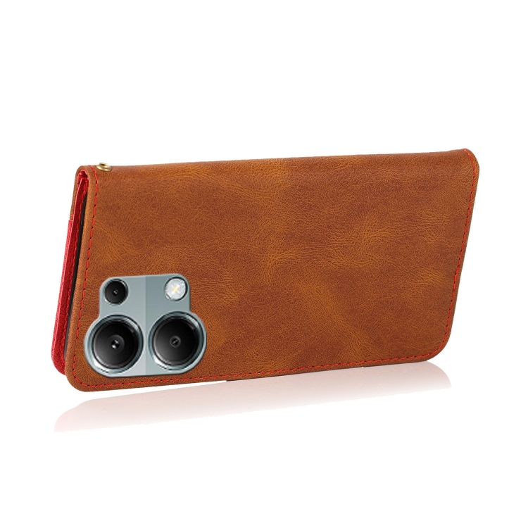 Funda de Cuero con Costuras de Dos Colores para Redmi Note 13 Pro 4G (Marrón y Rojo)