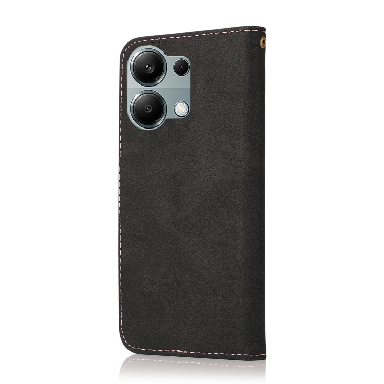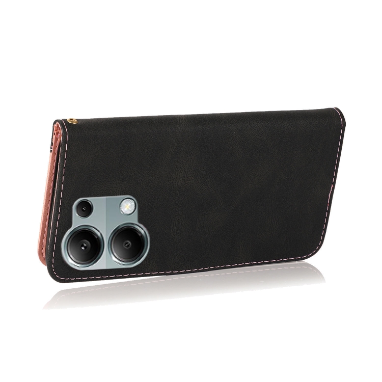 Funda de Cuero con Costuras de Dos Colores para Redmi Note 13 Pro 4G (Negro y Oro Rosa)