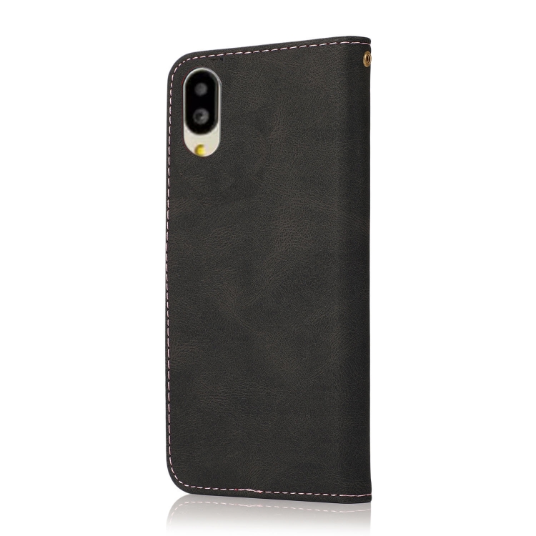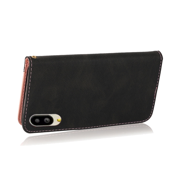 Funda de Cuero con Costuras Dos Colores para Sharp Basio Active Shg09 (Oro Rosa Negro)