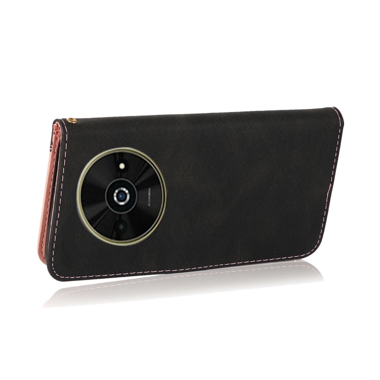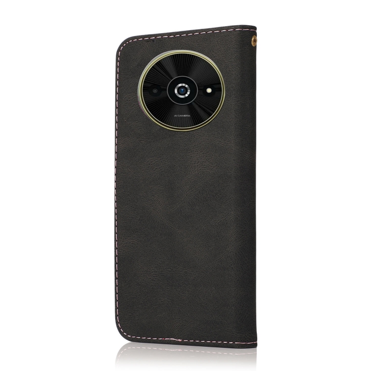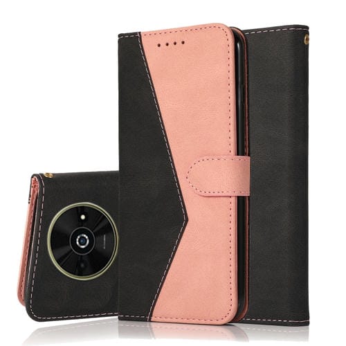 Funda de Cuero con Costuras de Dos Colores para Teléfono Xiaomi Poco C61 (Oro Rosa Negro)