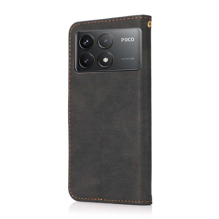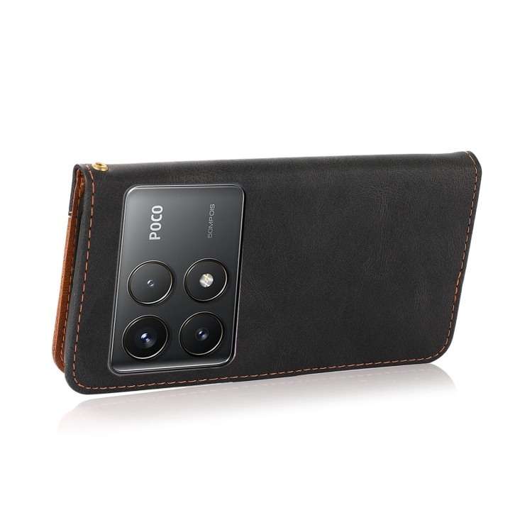 Funda de Cuero con Costuras de Dos Colores para Teléfono Xiaomi Poco F6 Pro (Negro y Marrón)