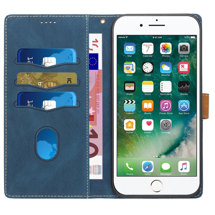 Funda de Cuero para iPhone 8 Plus/7 Plus con Costuras en Cuadrícula y Cordón (Azul)