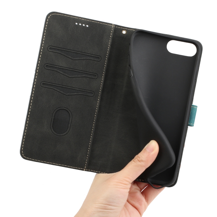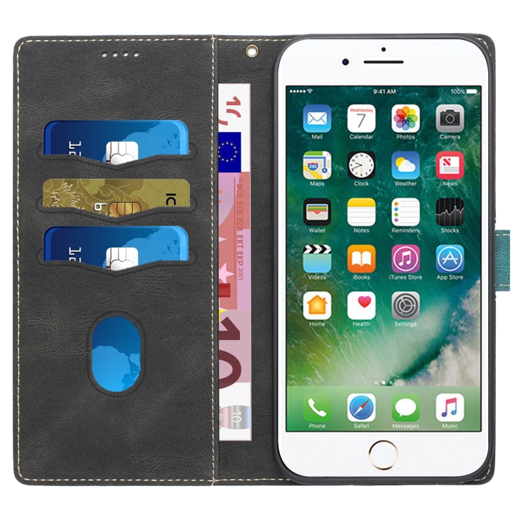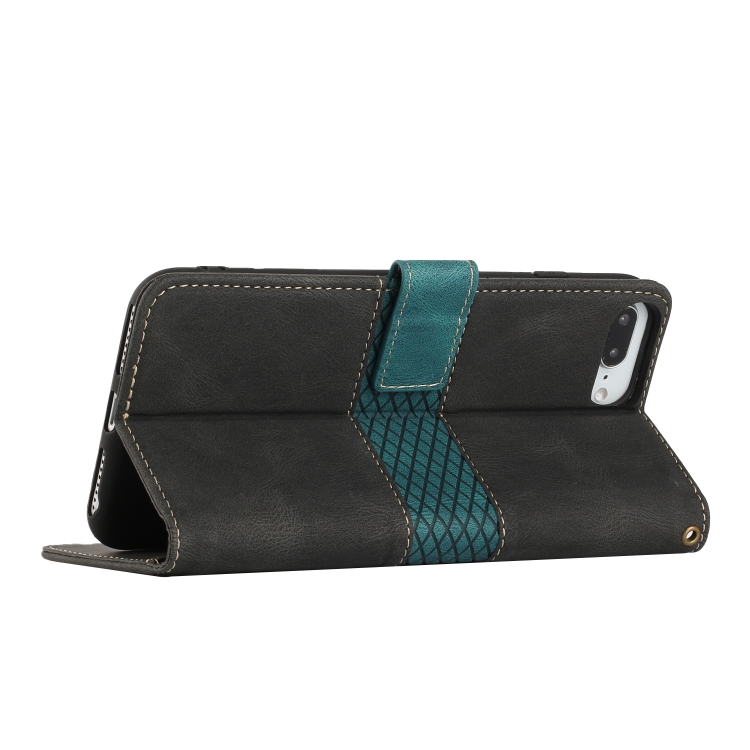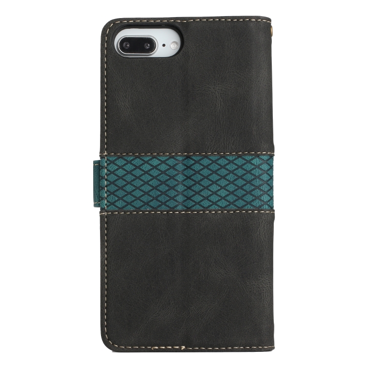 Funda de Cuero para iPhone 8 Plus 7 Plus con Costuras en Cuadrícula y Cordón (Negra)
