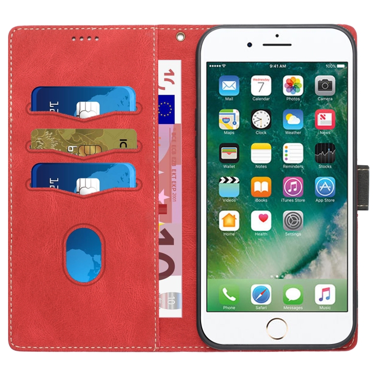 Funda de Cuero con Costuras en Cuadrícula y Cordón para iPhone 8 Plus/7 Plus (Rojo)