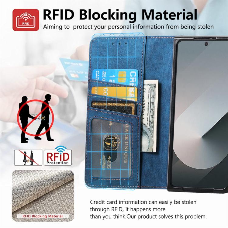 Funda de cuero con cremallera magnética MagSafe retro para Samsung Galaxy Z Fold 7 5G (azul)