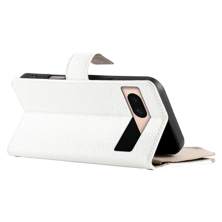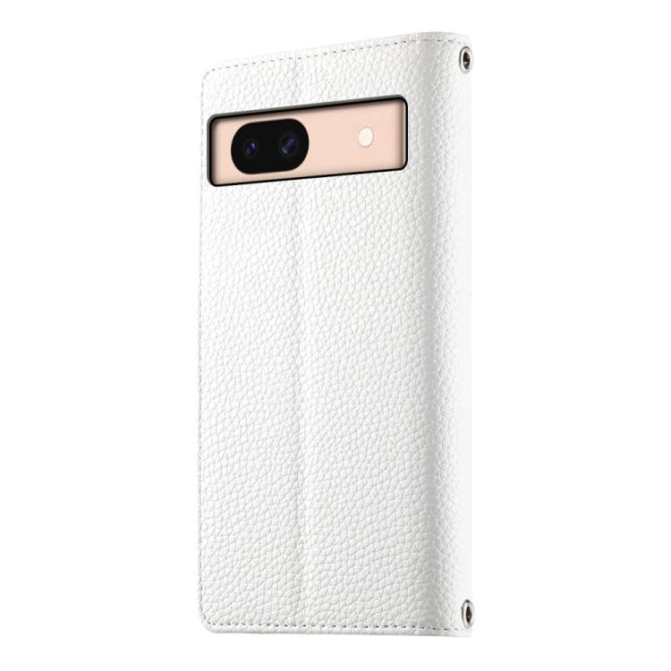 Funda de cuero con cremallera para Google Pixel 8a, con múltiples tarjetas y costuras, con correa corta (blanca)