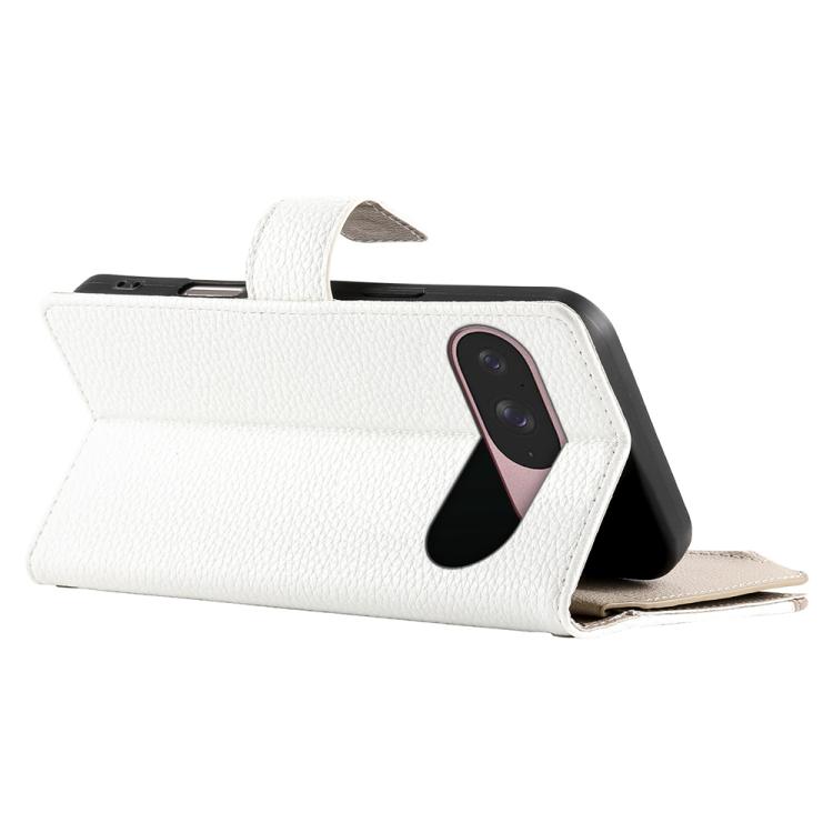 Funda de cuero con cremallera para Google Pixel 9/9 Pro/10/10 Pro, con costuras, para múltiples tarjetas y correa corta (blanca)