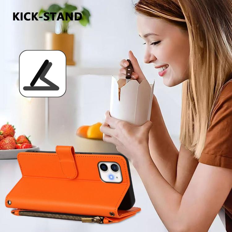 Funda de cuero con cremallera para iPhone 12 mini, diseño de mariposas, flores y amor, con múltiples tarjetas (naranja)