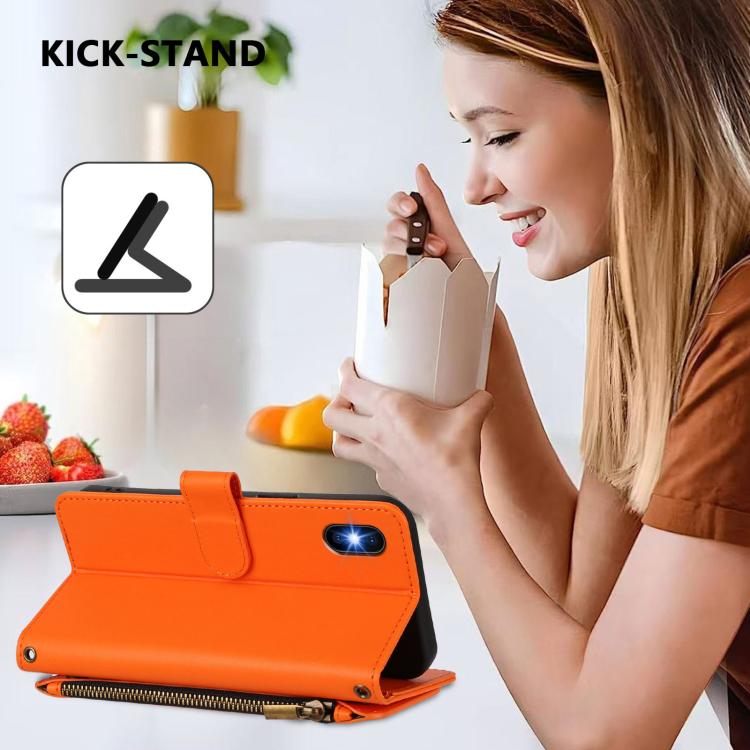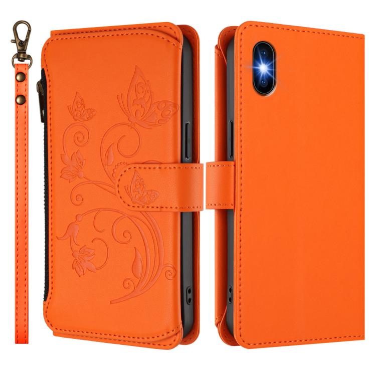 Funda de cuero con cremallera para iPhone XS Max, diseño de mariposas, flores y amor (naranja)