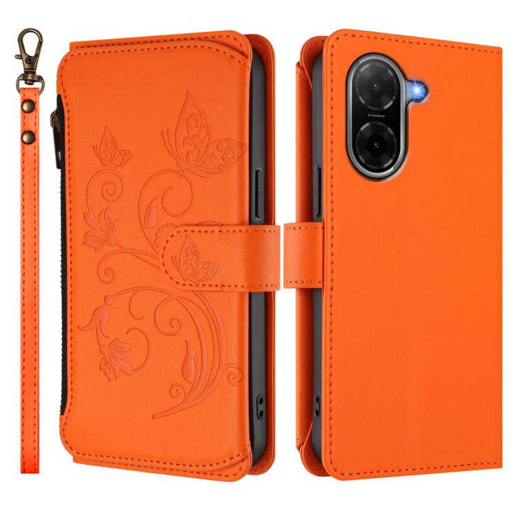 Funda de cuero con cremallera para Redmi A5 4G (171,7 mm) y Xiaomi Poco C71 (naranja)