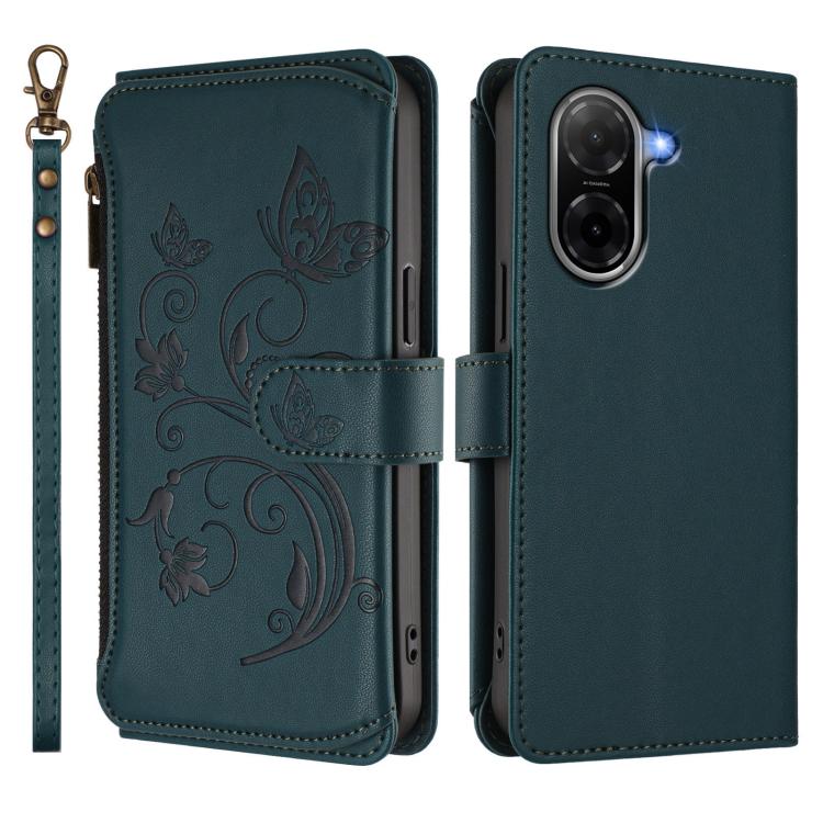 Funda de cuero con cremallera para Redmi A5 4G (171,7 mm) y Xiaomi Poco C71 (verde oscuro)