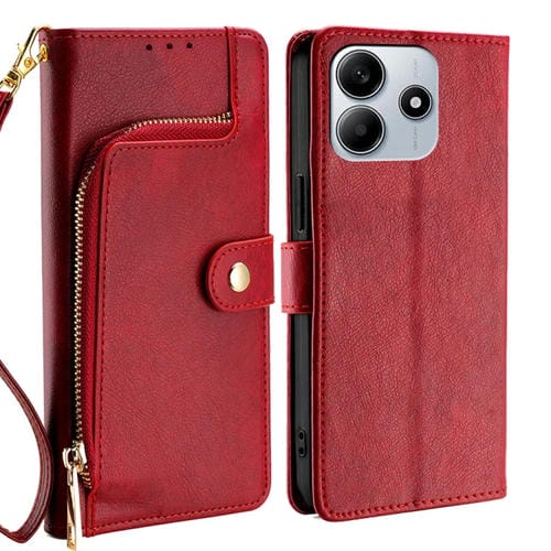 Funda de Cuero con Cremallera para Redmi Note 14 5G (Roja)