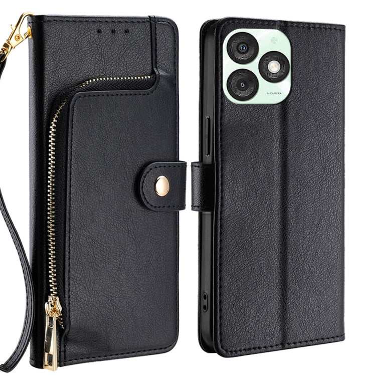 Funda de Cuero con Cremallera para Teléfono Itel A50 4G (Negra)