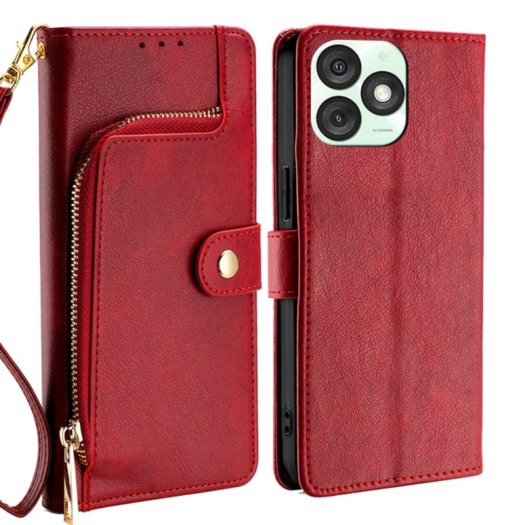 Funda de Cuero con Cremallera para Teléfono Itel A50 4G (Rojo)