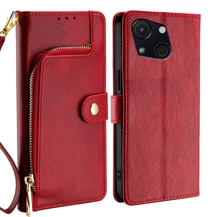 Funda de Cuero con Cremallera para Teléfono Itel A50C 4G (Rojo)