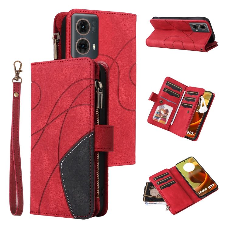 Funda de Cuero con Cremallera para Motorola Moto G85 con 9 Ranuras para Tarjetas (Rojo)
