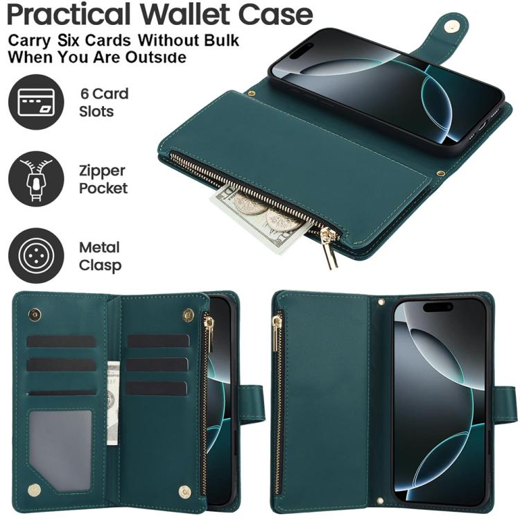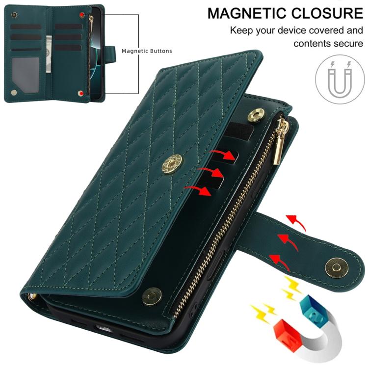 Funda de cuero con cremallera rombal para iPhone 17 Pro YM016 con tarjetero y cordón (verde)