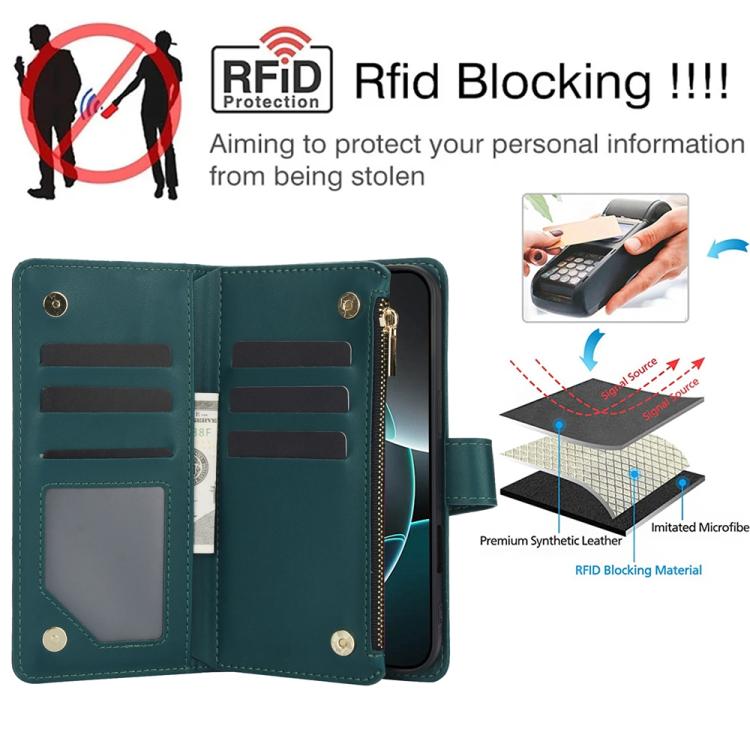 5. Función de cartera multitarjeta: Múltiples ranuras para tarjetas y bolsillos con cremallera, compartimentos para efectivo para guardar tarjetas de crédito y billetes pequeños.