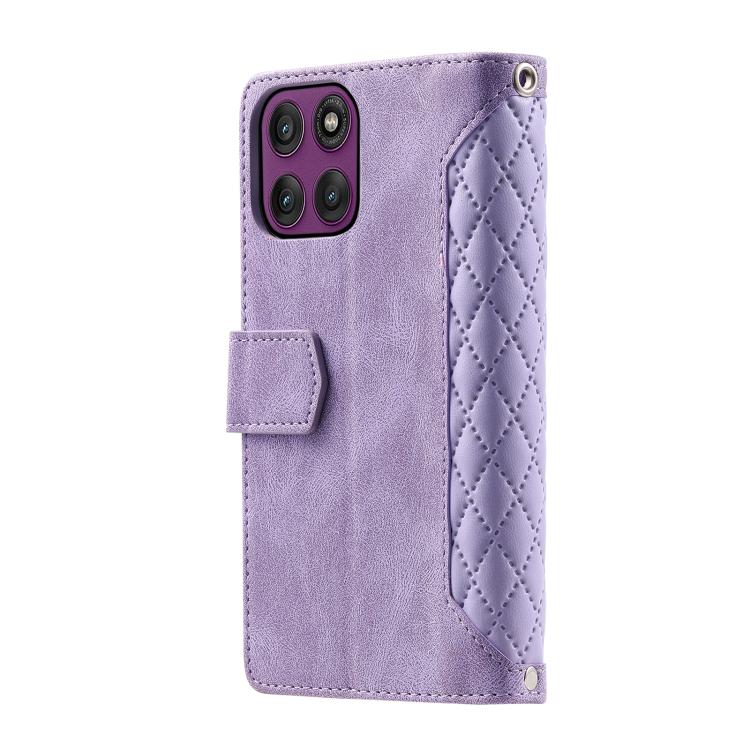 Funda de cuero con cremallera y cordón para Motorola Edge 60 Pro (morado)