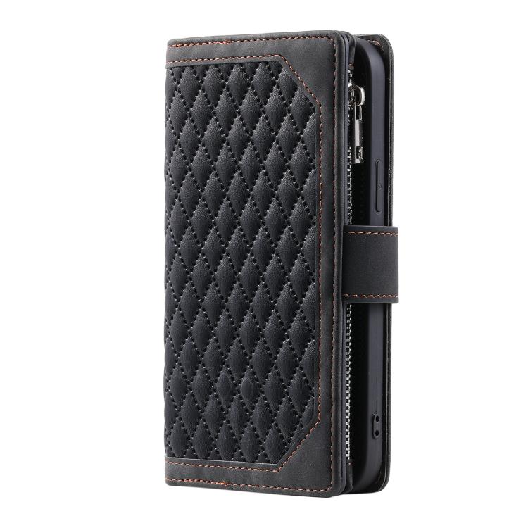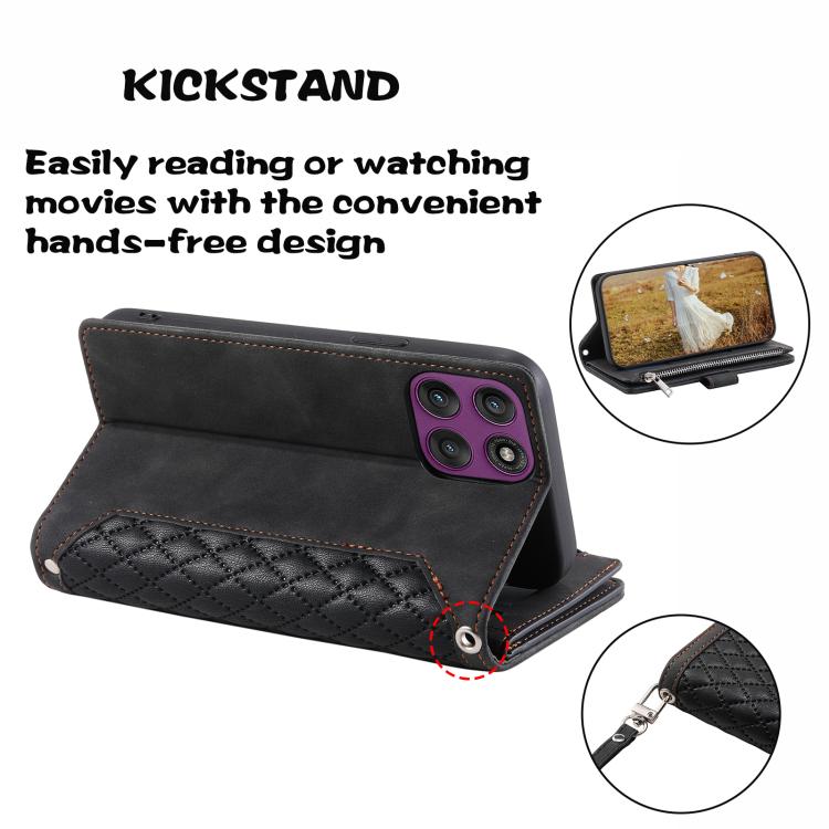 Funda de cuero con cremallera y cordón para Motorola Edge 60 Pro (negro)