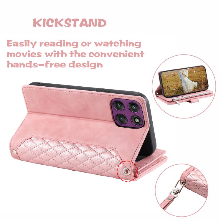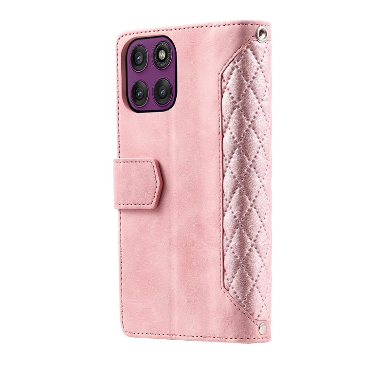 Funda de cuero con cremallera y cordón para Motorola Edge 60 Pro (oro rosa)