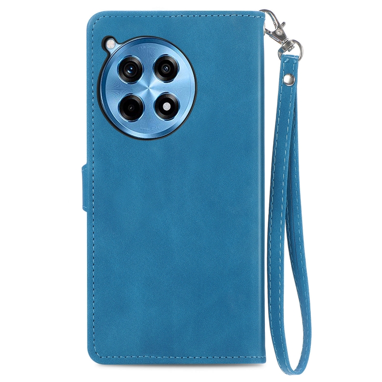Funda de Cuero con Cremallera para OnePlus Ace 3 Pro con Flores en Relieve (Azul)